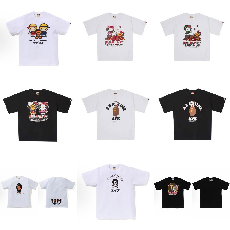 BAPE Baby Milo x Hello Kitty Collab Cartoon Print Short-Sleeve T-Shirt-6040