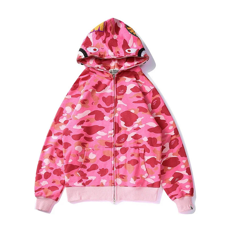 BAPE colorblock fluorescent shark series hooded sweatshirt jacket-4243