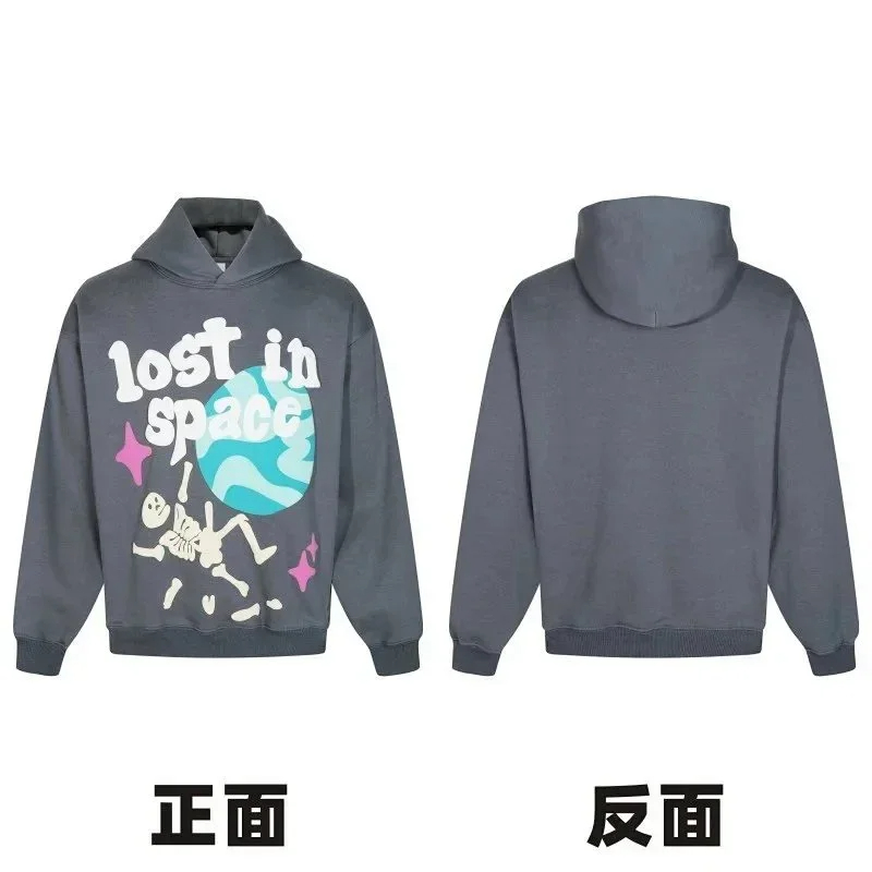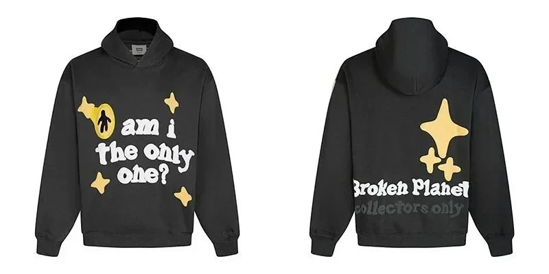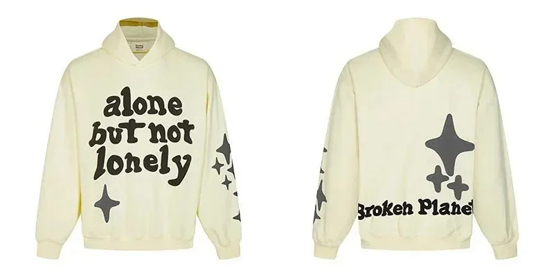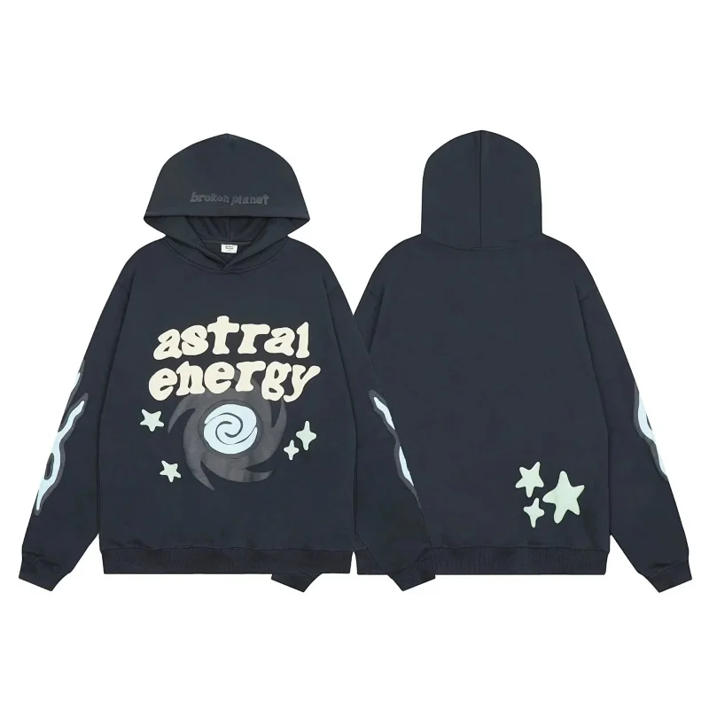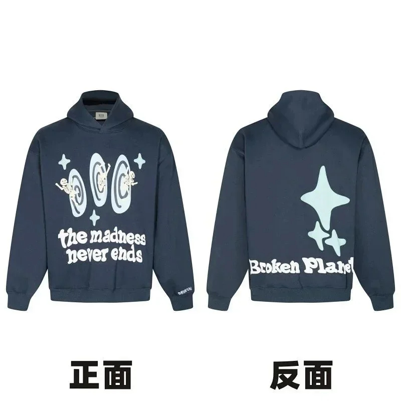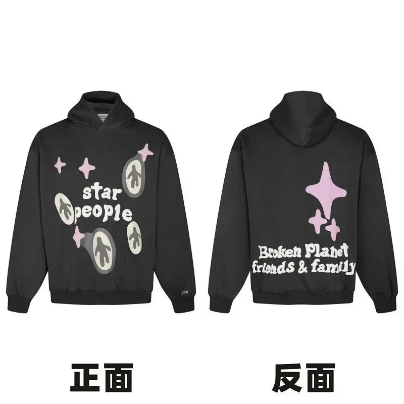 Broken Planet American style retro foam printing hooded sweatshirt-2506