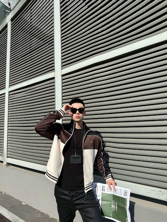 Celine embroidered chocolate-colored patchwork color-block casual jacket-5482