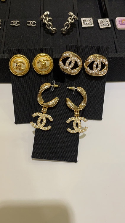 Celine pearl round button gold backpack buckle double C earrings-3899