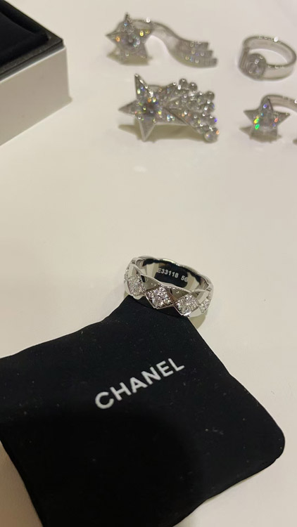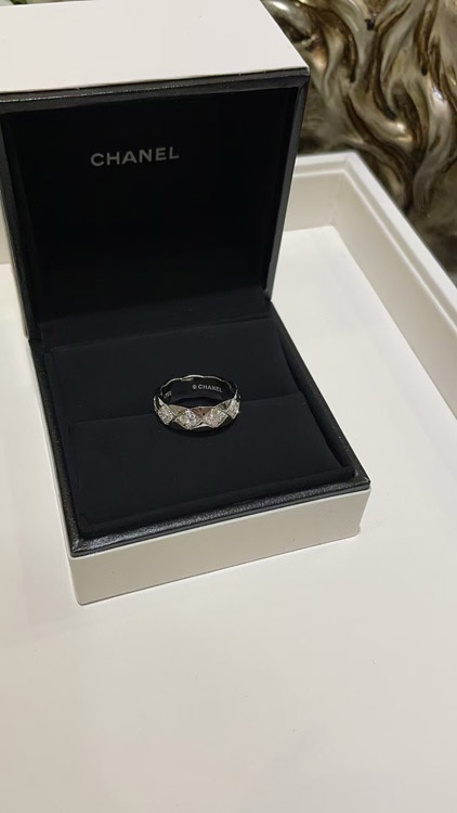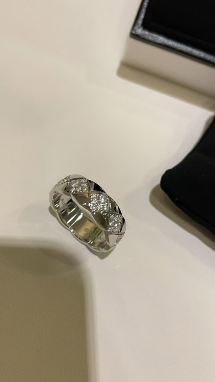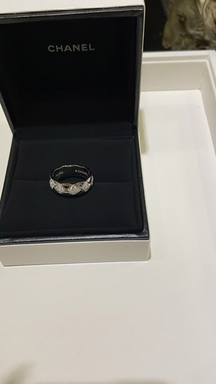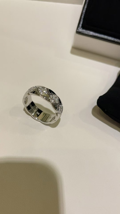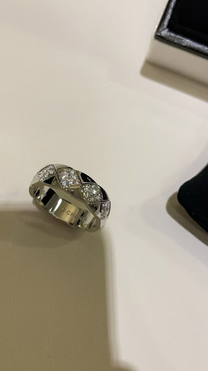 Chanel diamond pattern white gold ring-3753