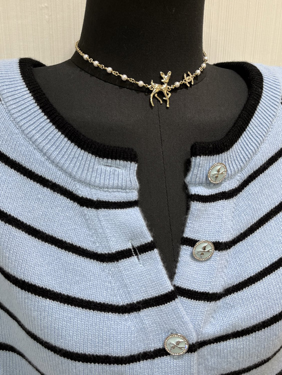 Chanel Golden Deer Full Diamond Double C Pearl Necklace-3749