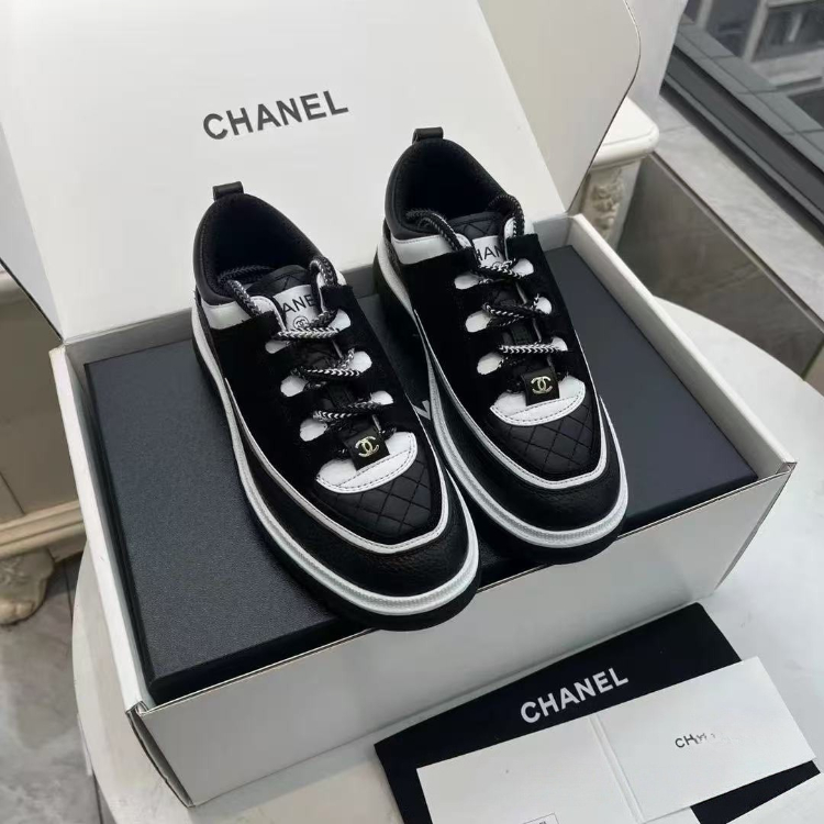 Chanel new platform panda-style color-blocked quilted dad sneakers-5702
