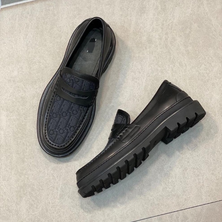 Dior new leather and canvas patchwork slip-on casual shoes-5748