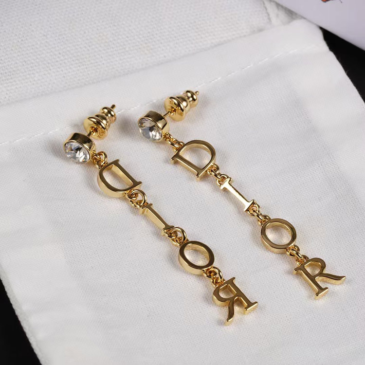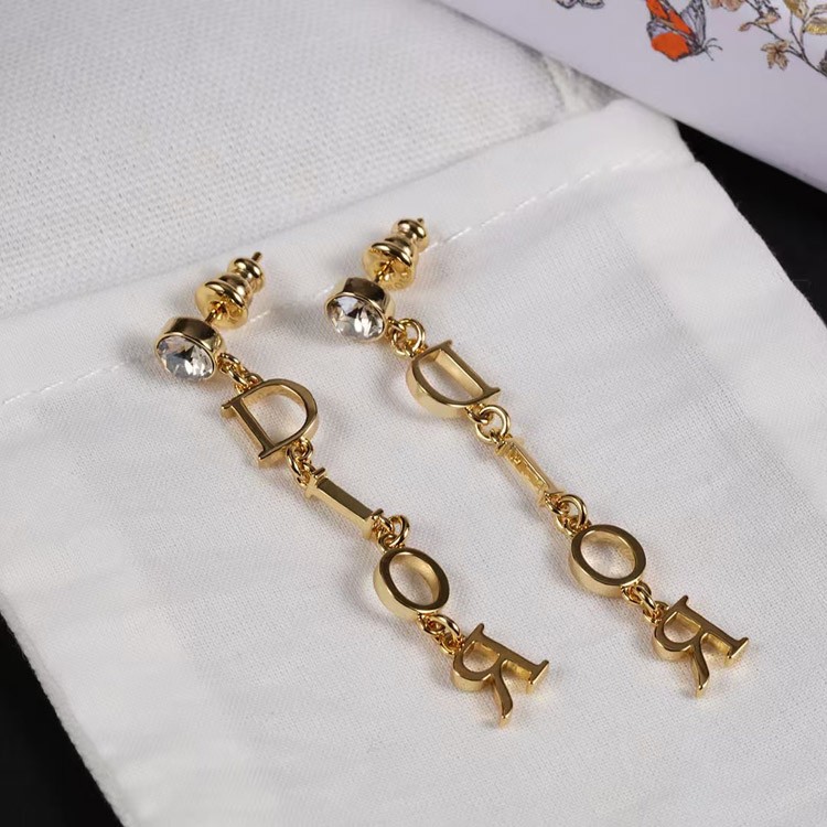 Dior single diamond hanging logo earrings-3708