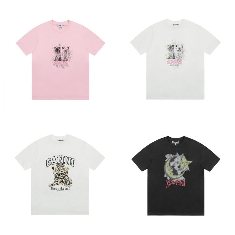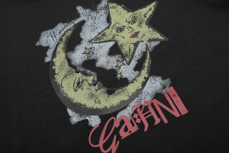 GANNI New Cartoon Print Crew Neck Loose Short Sleeve T-Shirt-6376