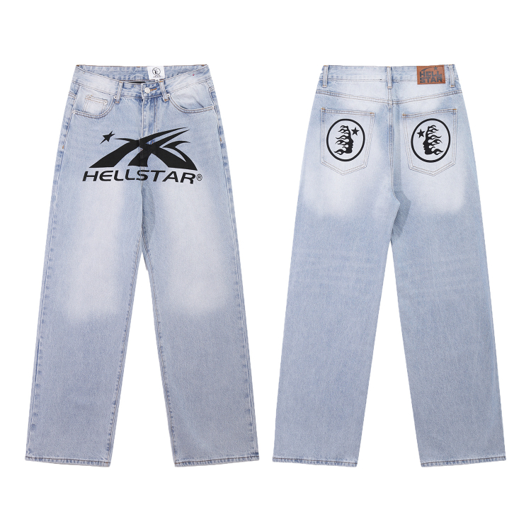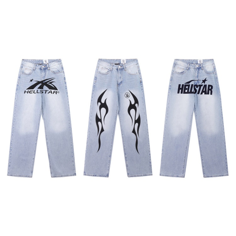 Hellstar Casual Loose Straight-Leg Printed Washed Denim Jeans-5281