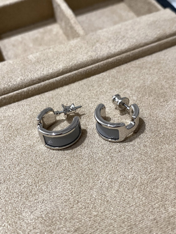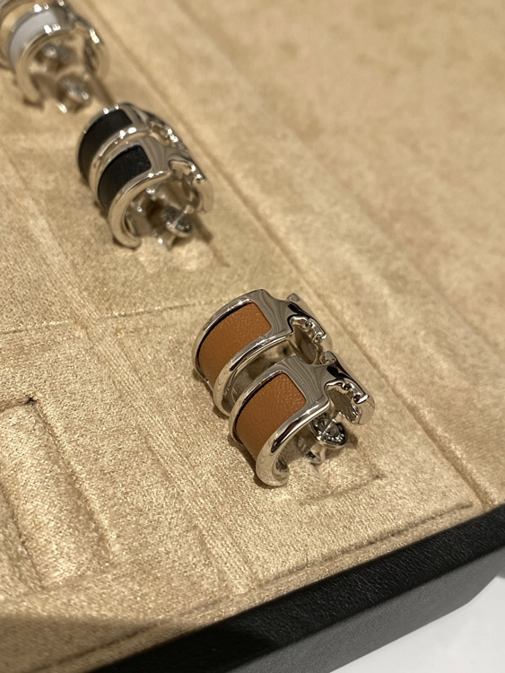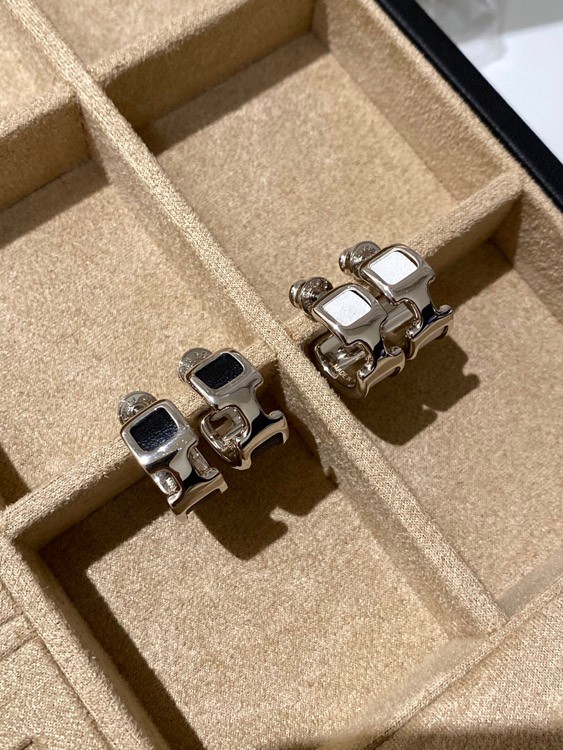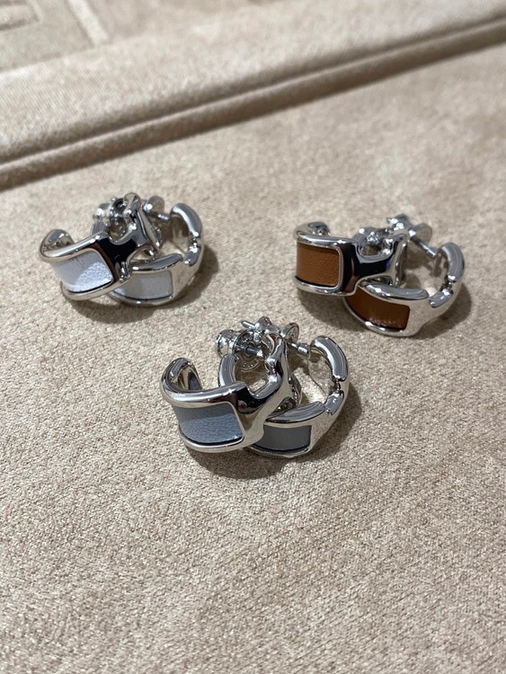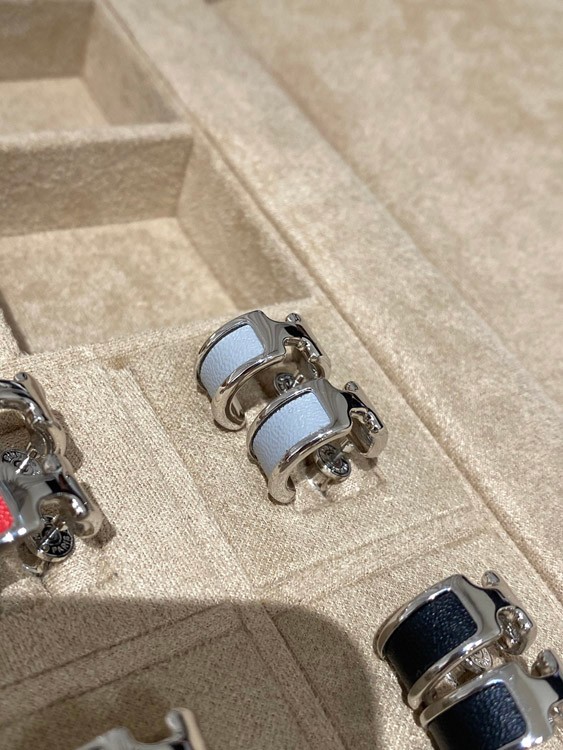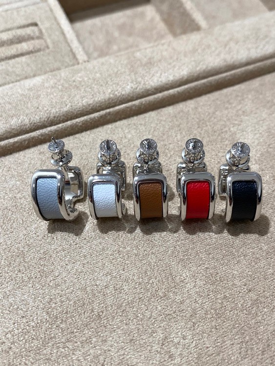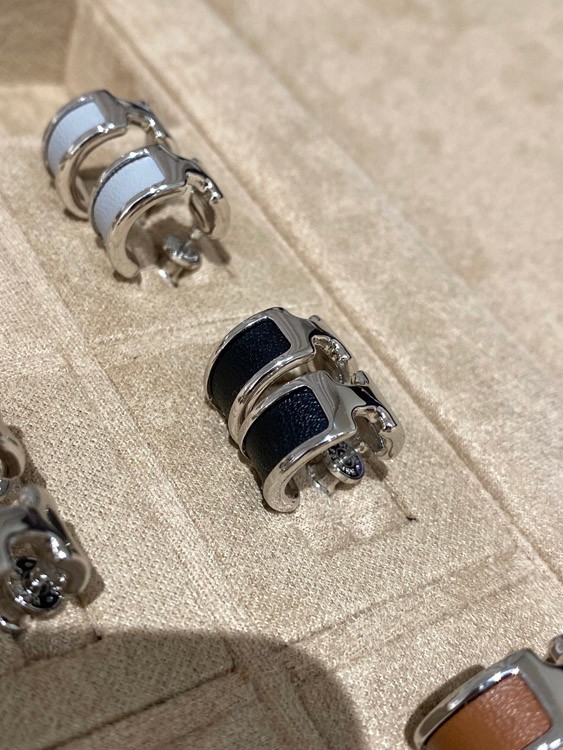 Hermes leather stitching earrings-3611