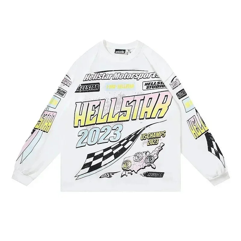 Ins same style Hell Star Retro Print Men's and Women's Loose Casual Long Sleeve T-shirt-2514