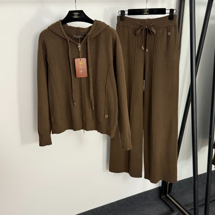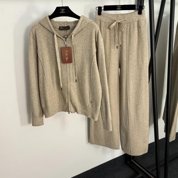 Loro Piana knitted sweater set with square neckline and decorative buttons-5404