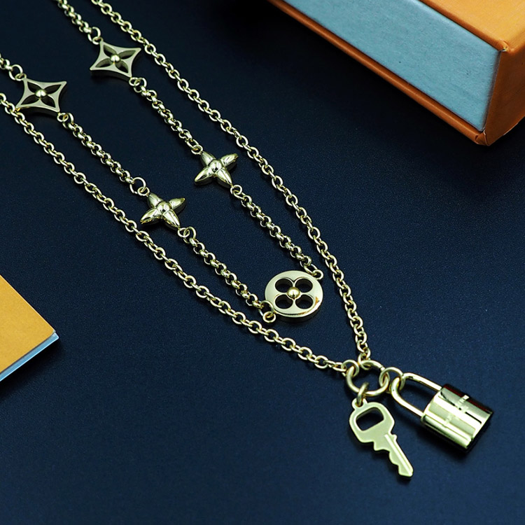 Home > Louis Vuitton LV detachable double chain floral and letter pattern padlock necklace-3808