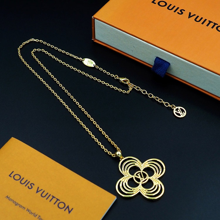 Louis Vuitton LV Floral Round Flower Hollow Metal Wire Outline Necklace-3571