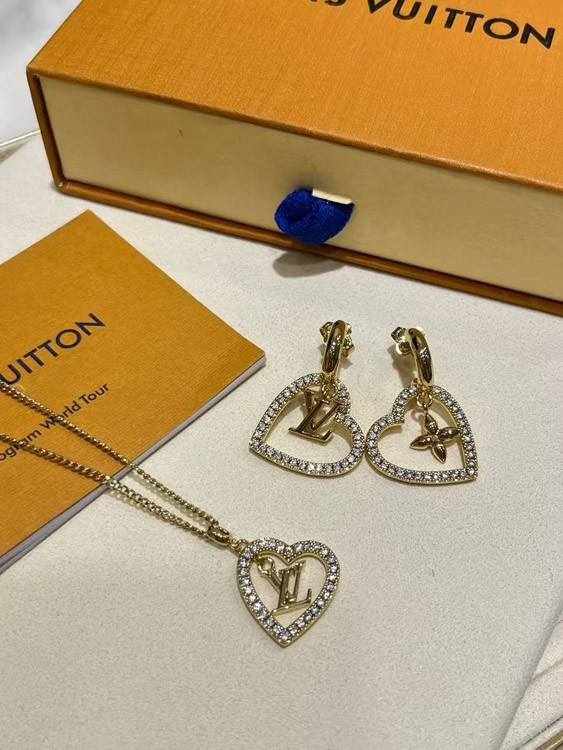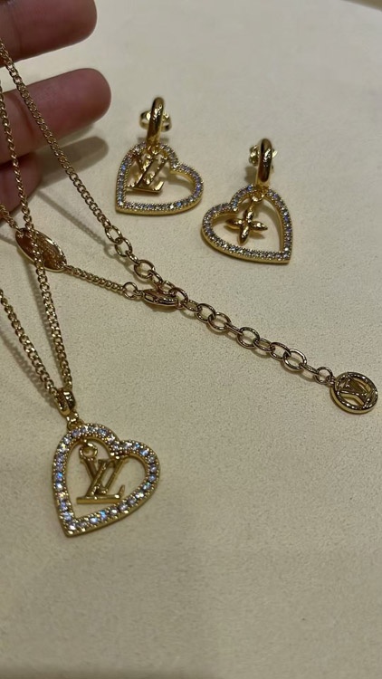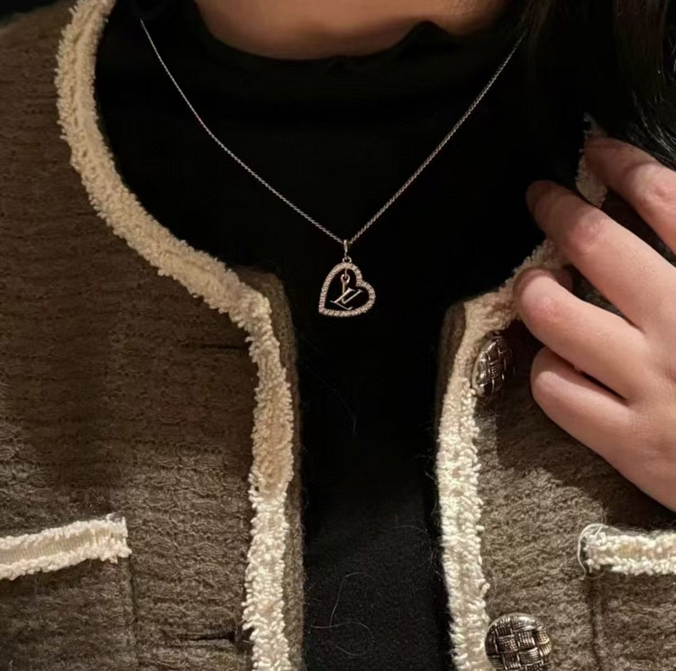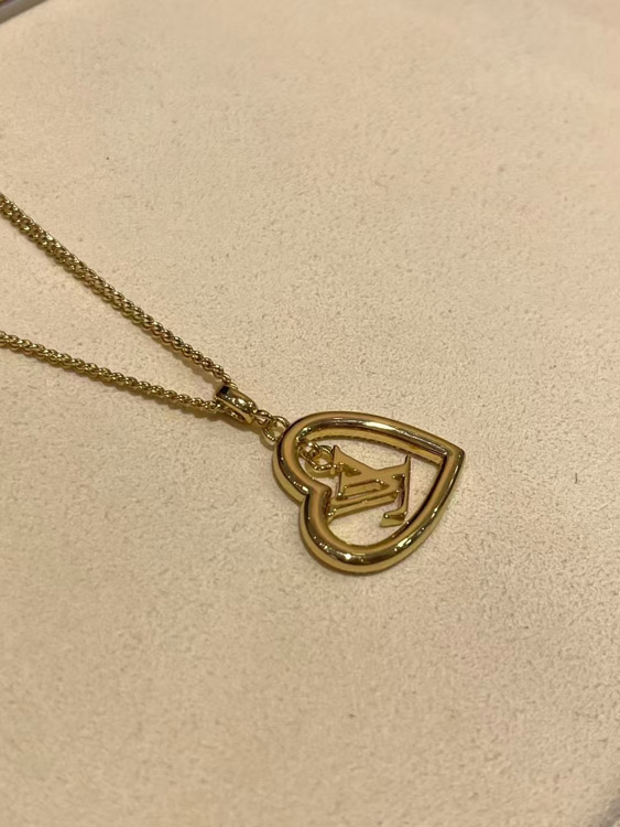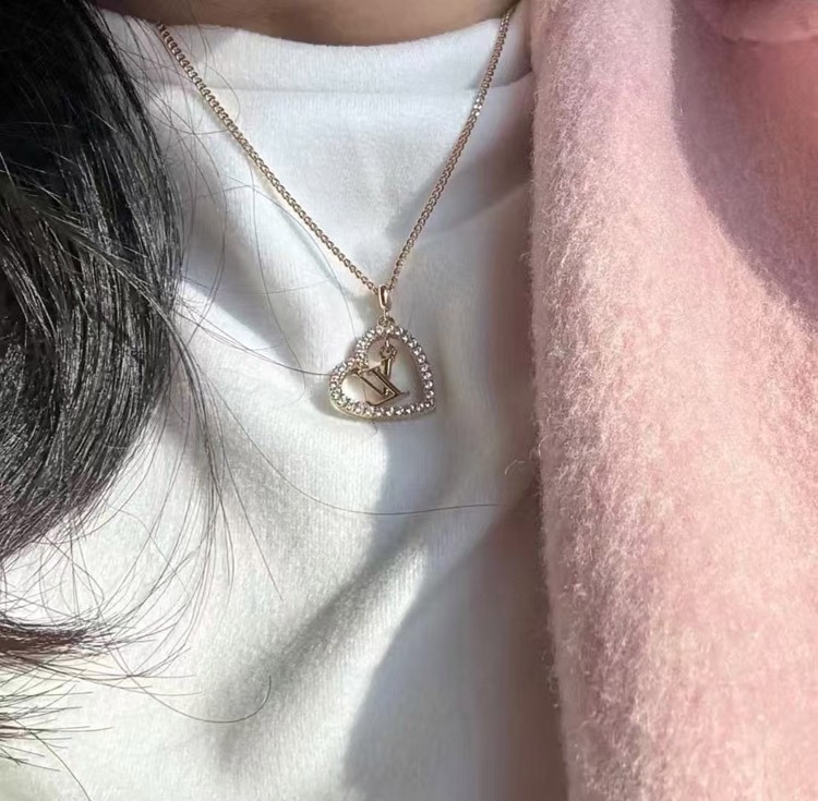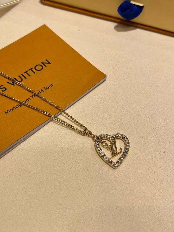 Home > Louis Vuitton LV gold letter hollow diamond heart necklace-3725