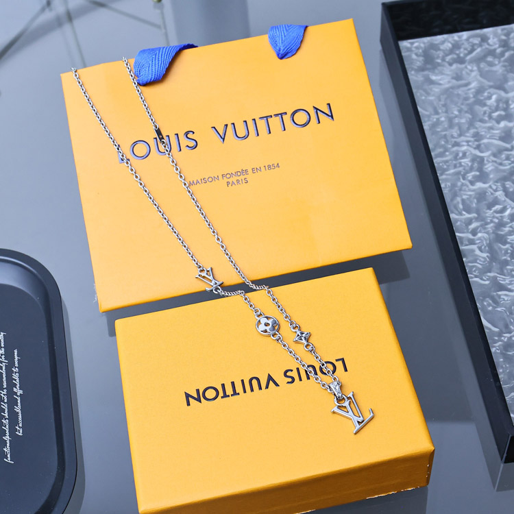 Louis Vuitton LV round floral letter pendant necklace-3633