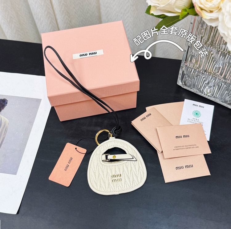 MIIUMIU letter leather embroidered bag hanging ornaments-3554