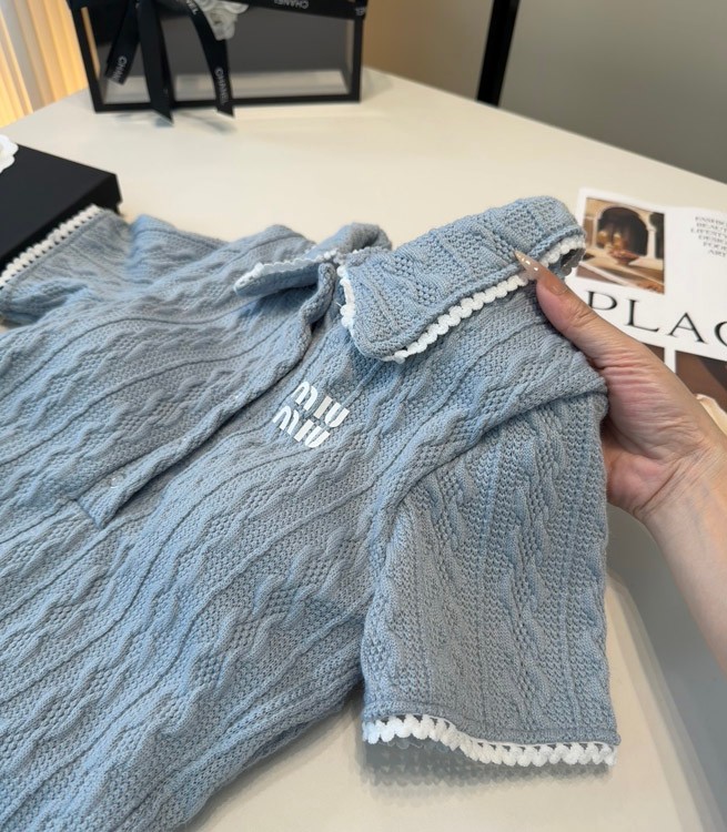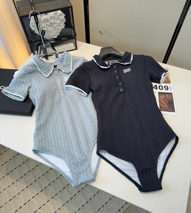 Miu Miu Cable-Knit One-Piece Swimsuit with Peter Pan Collar-6482