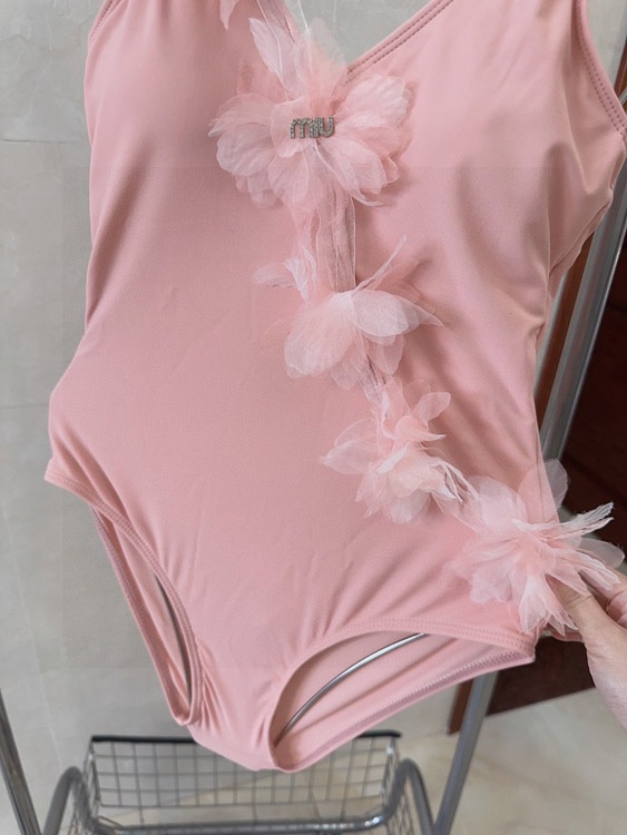 Miu Miu Tulle Flower V-Neck One-Piece Swimwear-6478