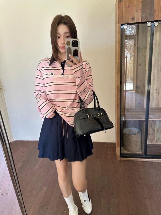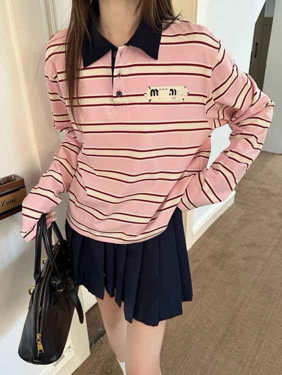 Home > Miu Miu's new collared patchwork casual versatile polo shirt T-shirt-5371