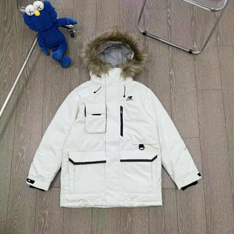 New Balance Embroidered Sports Zipper Hooded Mid-Length Workwear Down Jacket-4264