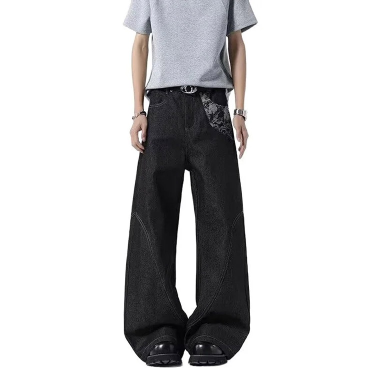 Onenin's new raw color jacquard wide-leg jeans-4904