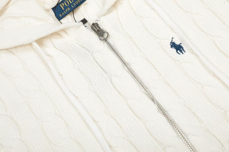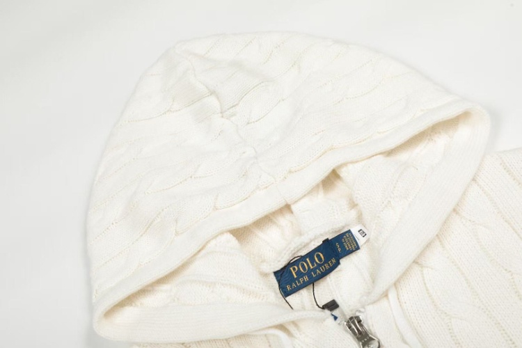 Polo Ralph Lauren solid color cable knit full-zip hooded jacket-6330