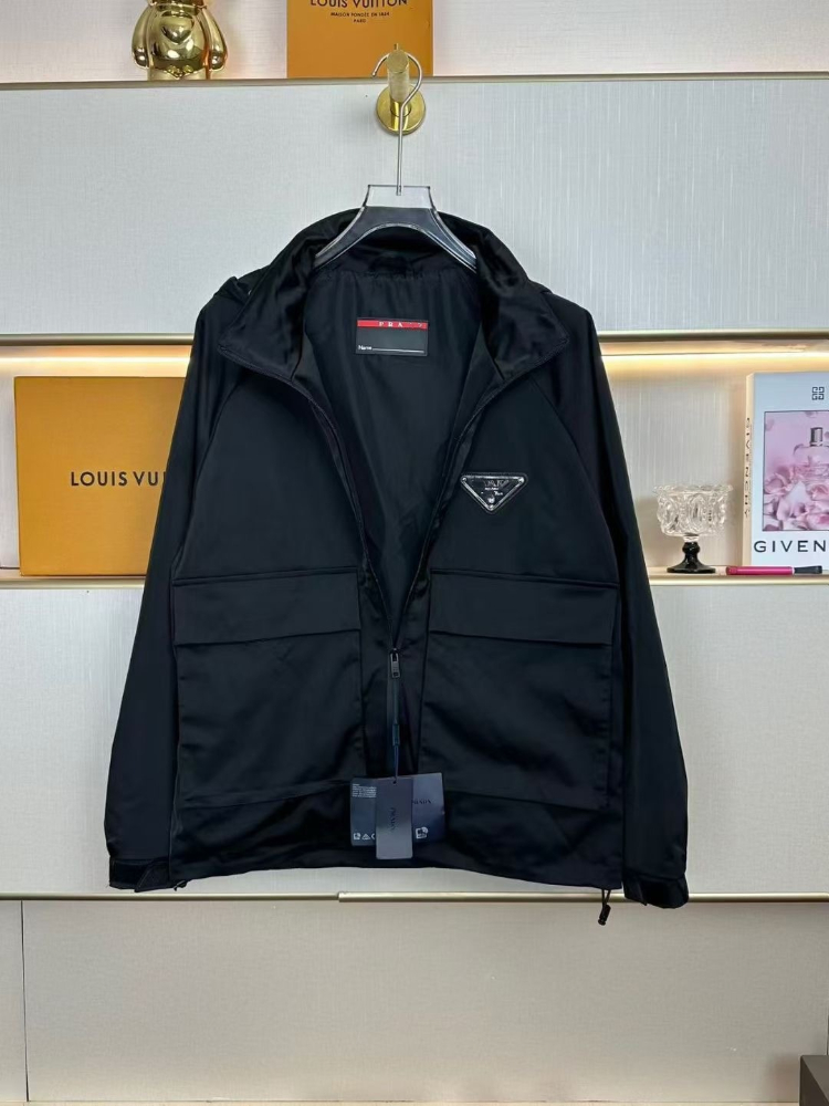 Prada new metal triangle logo workwear pocket zip-up jacket-5321