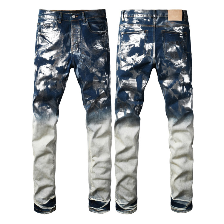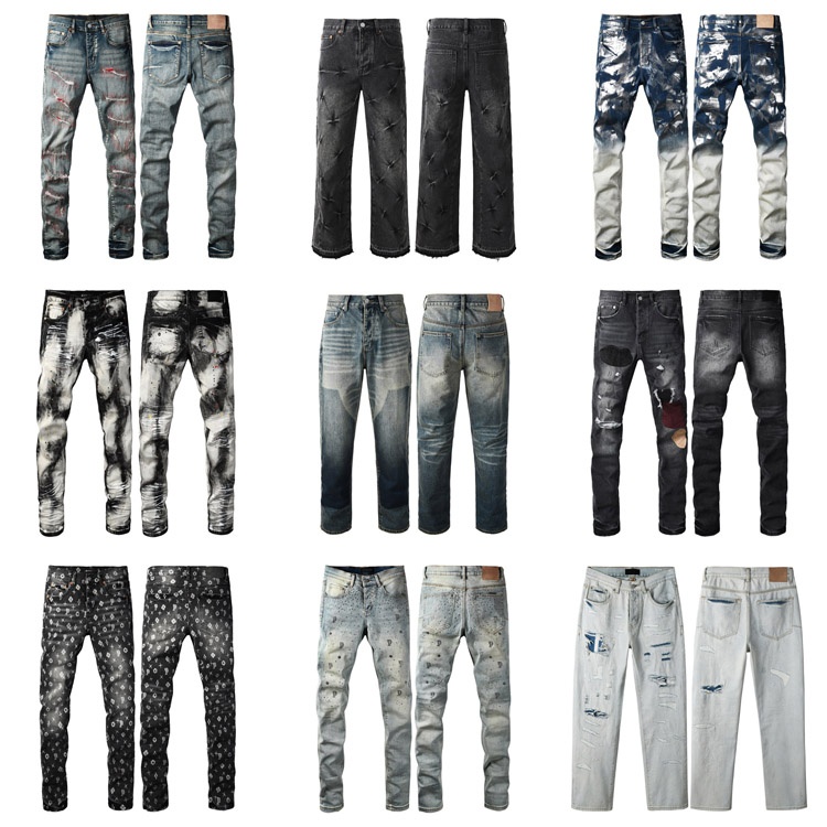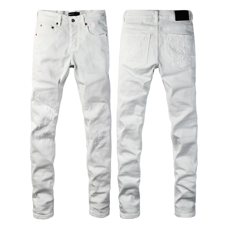 Purple Brand new embroidered slim-fit ripped print stretch jeans-4250