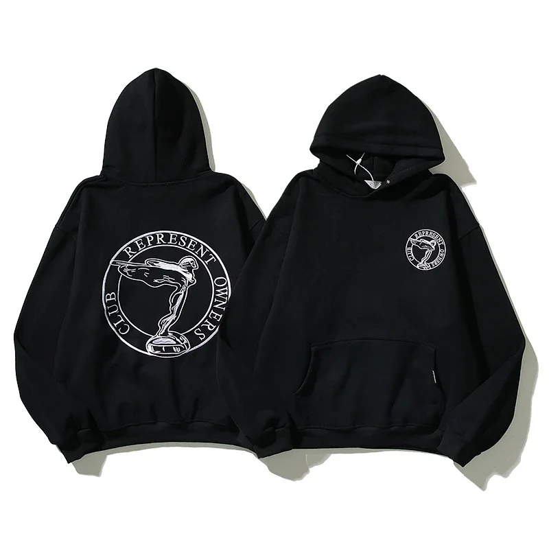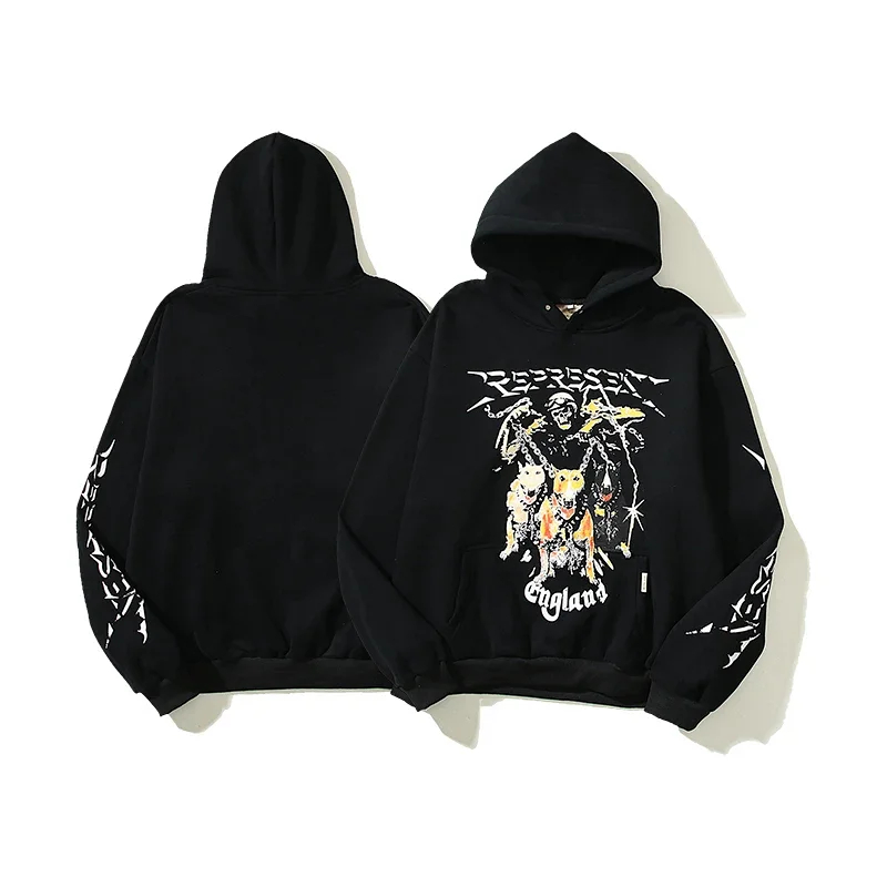 REPRESENT Printed Drawstring Hooded Jersey Sweatshirt-4497