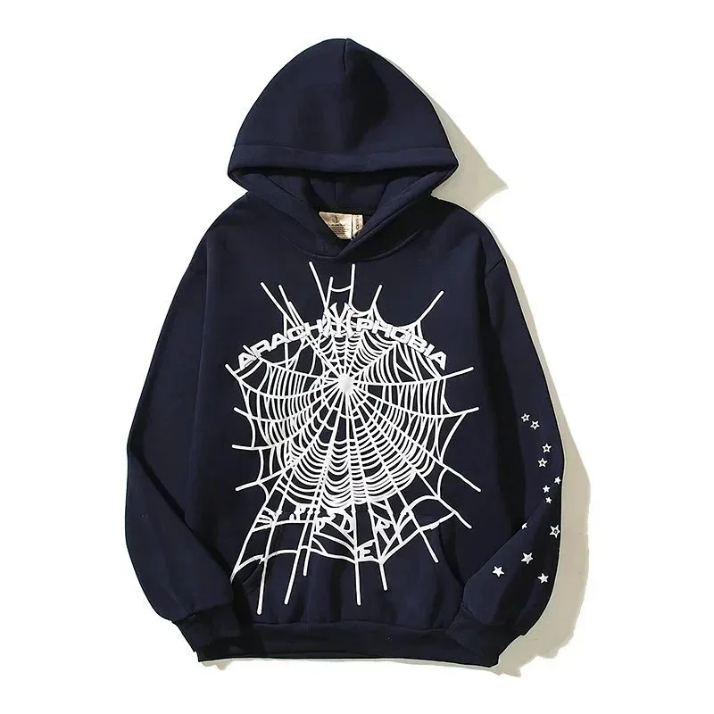 Home > Sp5der Navy Phobia NY spider web print hoodie-2112