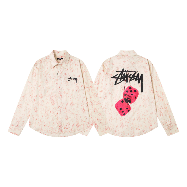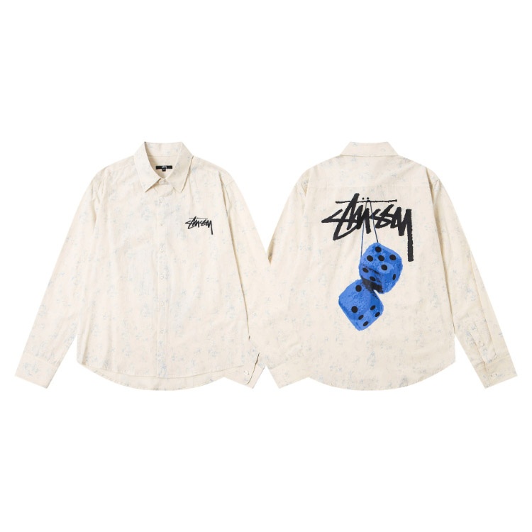 Stussy new loose-fitting casual Japanese-style long-sleeved printed shirt-5275