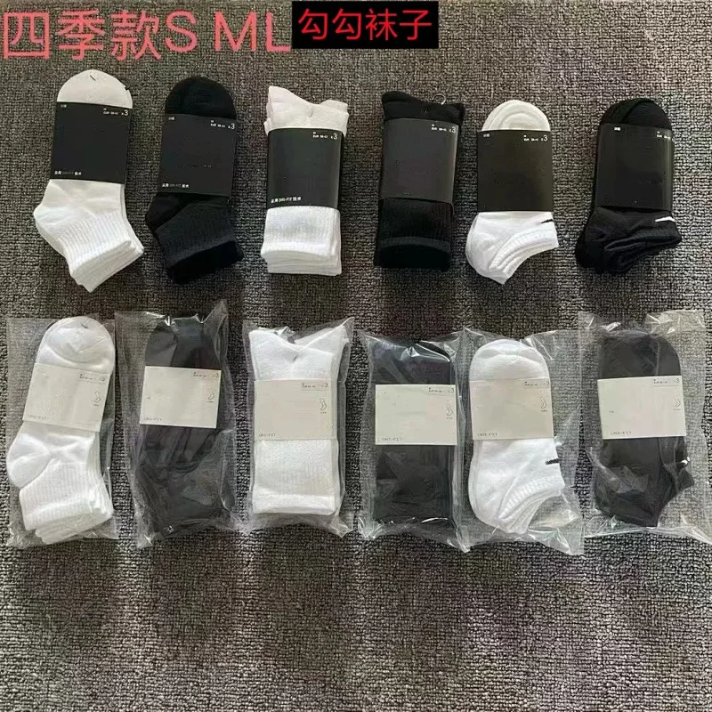 Suwannexist solid color sports socks black and white mid-length basketball socks-2424