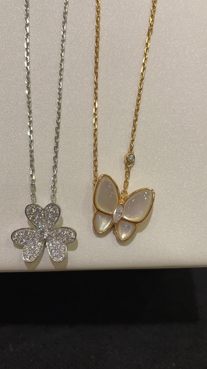 Van Cleef & Arpels White Mother-of-Pearl Diamond Floral Butterfly Necklace-3733